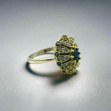 مجوهرات إسطنبول | خاتم فضة عتيق مصنوع يدويًا من الزمرد
