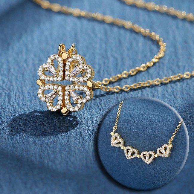 - قلادة فريدة تتحول من ورقة البرسيم ذات الأربع أوراق إلى أربعة قلوب متلألئة