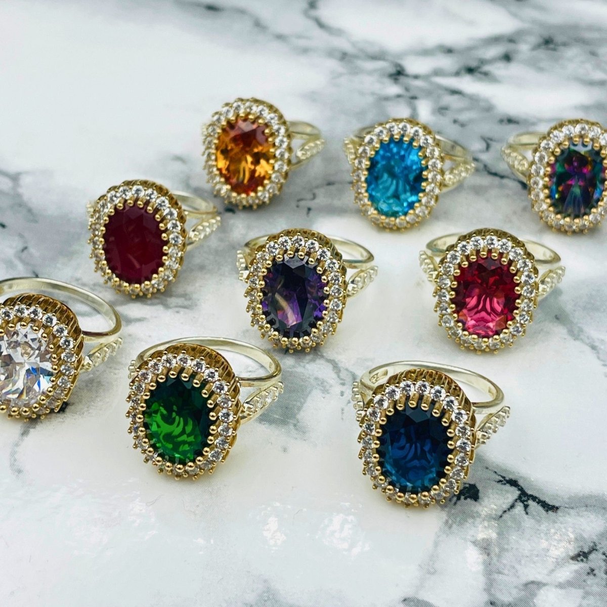 خاتم بحجر أزرق أكوامارين بيضاوي رائع