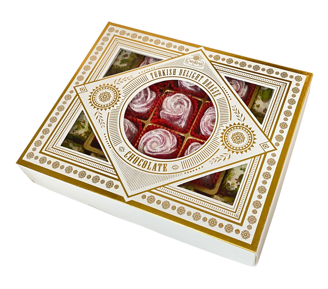 هذه مجموعة مختارة من نوعين فاخرين. تحتوي على 'File Fistikli Pasa' الرائعة، وهي حلوى فاخرة ملفوفة بفستق أنطاكيا المقطع الدقيق، و'Spesiyal Gul Lokum' الكلاسيكية، وهي حلوى على شكل وردة معطرة وجميلة التشكيل.