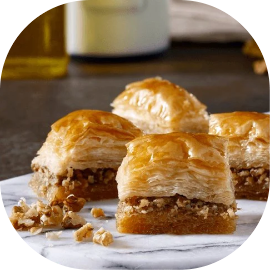 كيفية الاستمتاع: للحصول على أفضل تجربة، قم بتسخين البقلاوة في فرن تقليدي أو فرن محمصة لمدة 5-7 دقائق عند درجة حرارة لا تزيد عن 300°F.